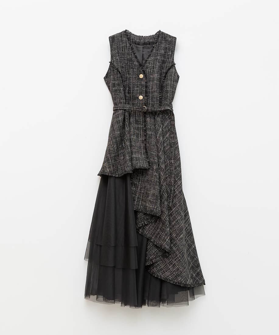 RANDA【4サイズ展開】チュールレイヤードジャケットワンピース