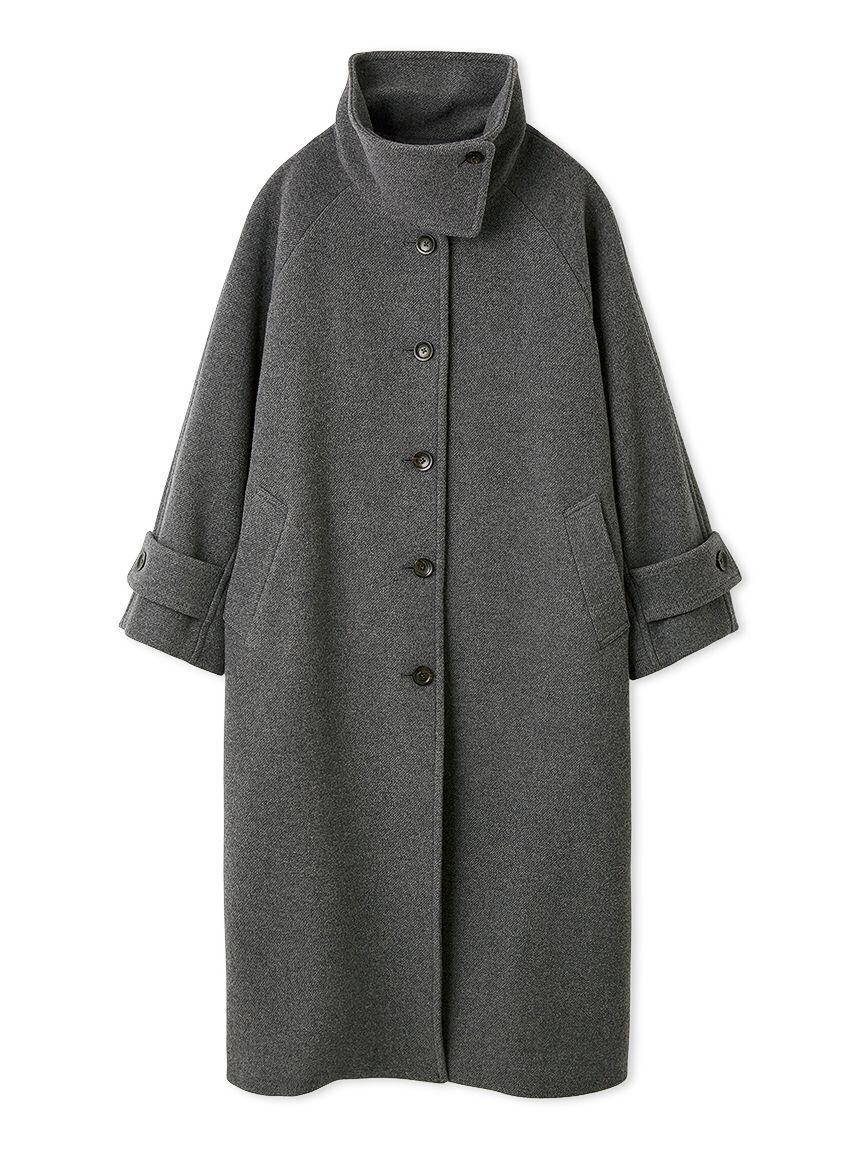 大きめの襟が目を引くバルマカンコートは、シンプルでありながらもセンスが光る一枚。