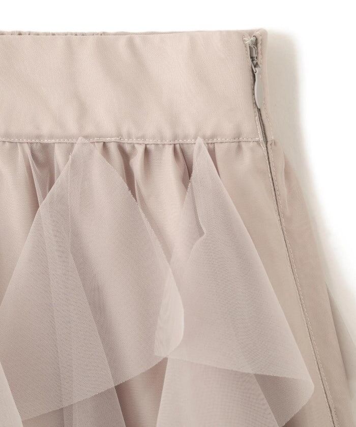 縦に流れるようなラッフルデザインが印象的なチュールスカート。
