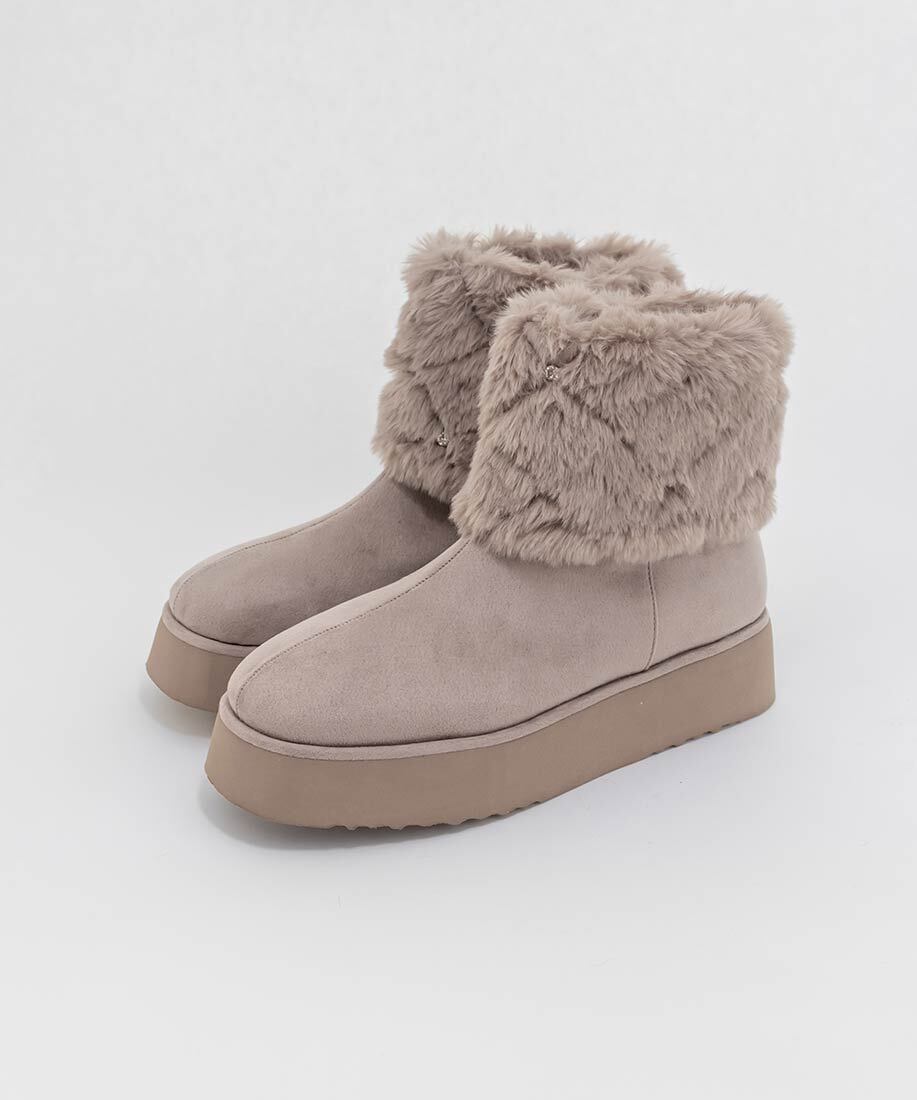 トレンドの厚底ムートンブーツをRANDAらしくフェミニンムード漂うデザインに仕上げた、大人のフェミニンスタイルにもマッチする一足です。